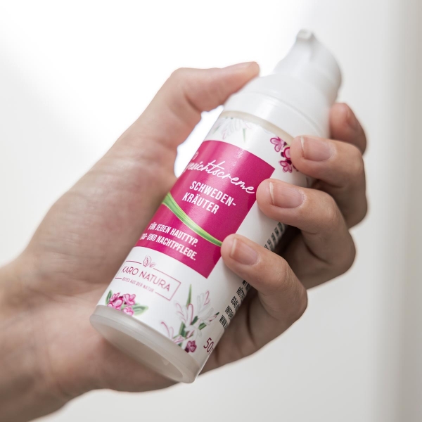 De gezichtscrème Zweedse kruiden bevat het hele scala aan positieve eigenschappen van Zweedse kruiden. Gecombineerd met waardevolle oliën en een subtiele geur verwennen ze je huid merkbaar. Het heeft een aangename textuur en trekt snel in, waardoor het de huid hydrateert en voedt.
